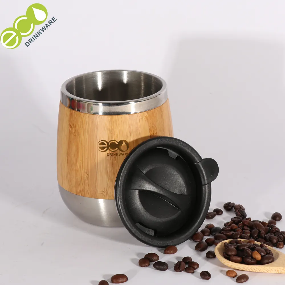 BPA free 400ml personalized custom logo Stainless Steel Bamboo Travel mug bamboo tumbler, comes with custom package .Profession OEM and ODM bamboo mug supplier.
