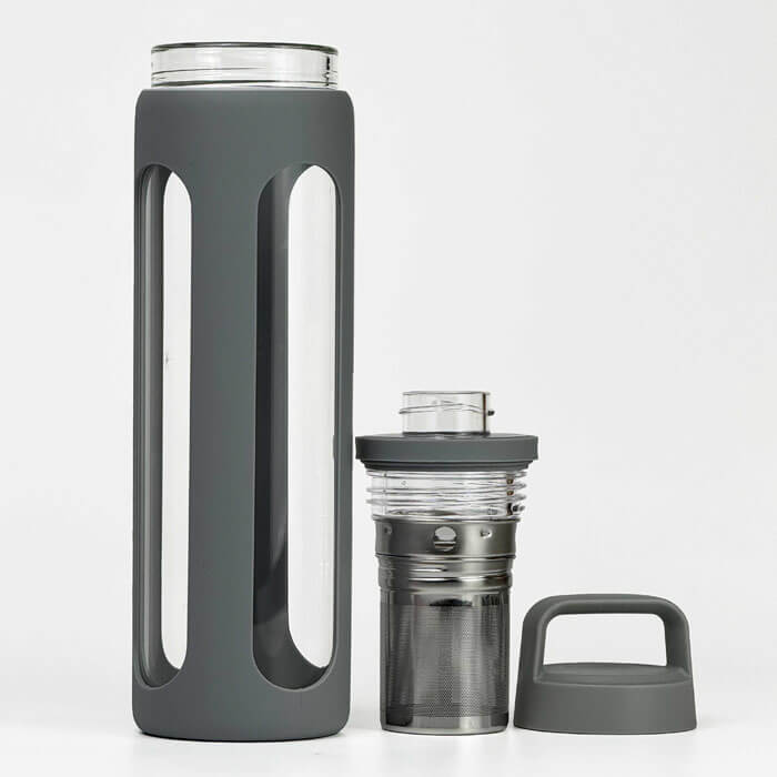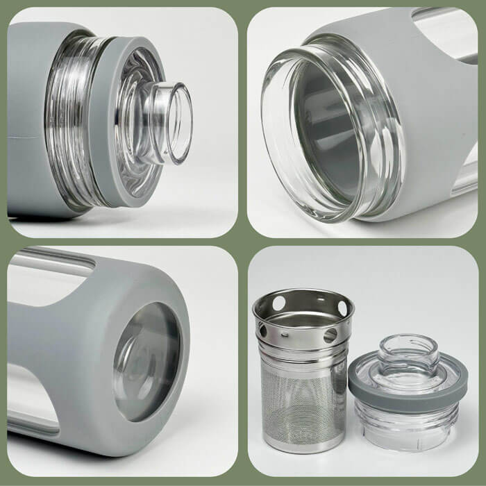 ● With easy carry handle silicone sleeve. This sleeve touched softt and can protect the glass tea bottle well