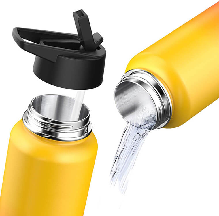 ●The vacuum-sealed space between the walls acts as a barrier to prevent heat from entering or escaping the bottle. This helps to keep hot beverages like coffee, tea, or soup hot for several hours, while cold beverages like water, juice, or soda remain cold for an extended period.