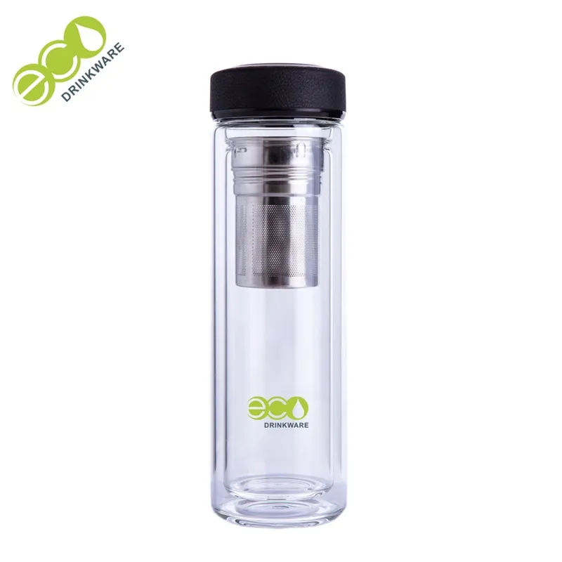 | Nome | GA6015 Garrafa de chá para beber em vidro borossilicato de parede dupla com logótipo personalizado e tampa em pele |
