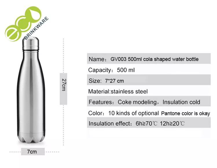 | Nome | GV003 500ML/17OZ Em stock Garrafa de cola em aço inoxidável de parede dupla em forma de cola 500ml OEM |